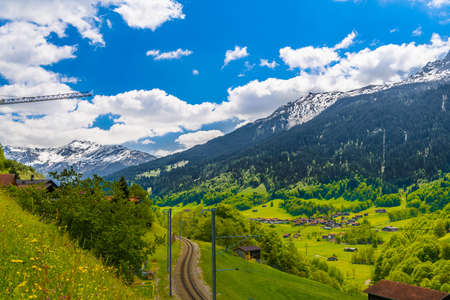 Railway in Alps mountains, Klosters-Serneus, Davos, Graubuenden Switzerland