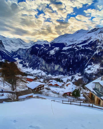 amazing touristic alpine village in winter Lauterbrunnen Switzerland Europe