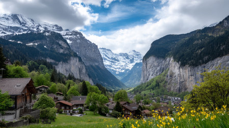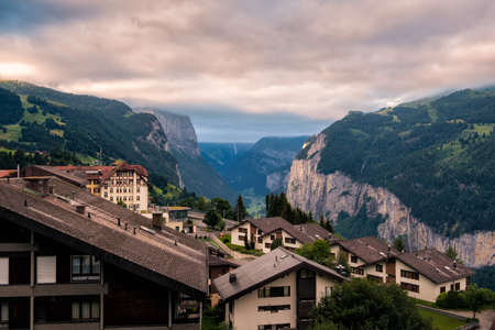 View of the Swiss Alps near the city of Lauterbrunnen. Switzerland.