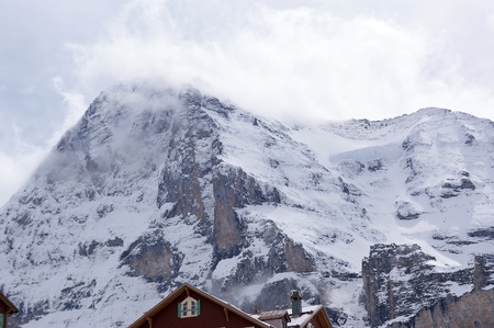 Close view of Jungfrau north face from Kleine Scheidegg, on Bernese Oberland, Switzerland.