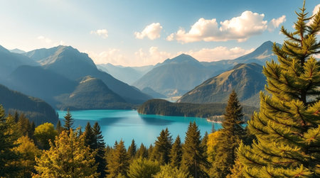 Landscape view of alpine lake and mountains in Bavaria, Germany