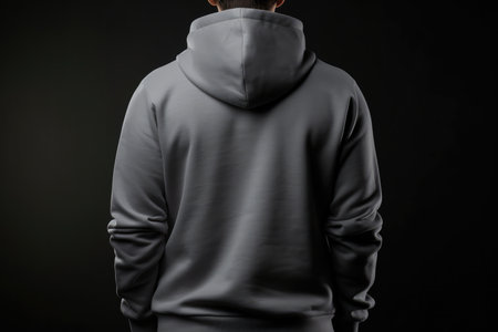 Man In Gray Hoodie On White Background, Back View, Mockup.
