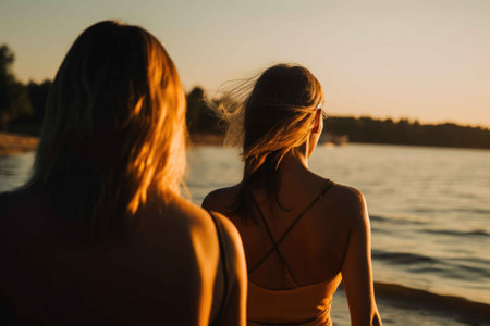 A group of friends sitting on a beach watching the sunset created with Generative AI