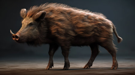 the boar, a majestic wild pig, is showcased in stunning detail in this 3d render, set against a crisp white background, highlighting its coarse fur, curved tusks, and powerful build, perfect for nature enthusiasts and wildlife artists seeking inspiration. ai generated
