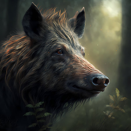 Digital painting of a wild boar in the forest. Wild boar portrait.