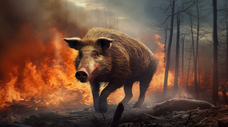 Boar image with a background made of nature. wild creatures