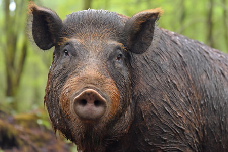 A breathtaking shot of a wild boar his natural habitat, showing his majestic beauty and strength.