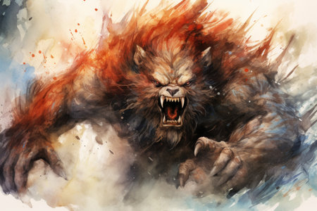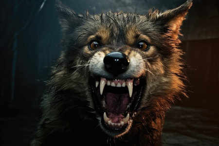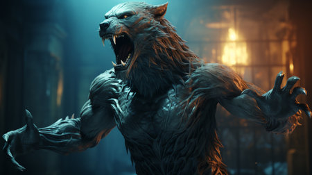 scary werewolf lurking in the shadows, ready to pounce, created with generative ai