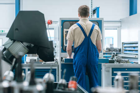 Skilled technician performing assembly work in a modern workshop while focused on tools and materials during daytime