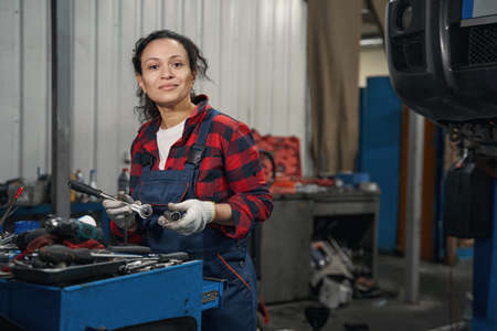 Closeup of auto mechanic. Auto repair service. Working tools background. Auto repair garage. Car mechanic. Car care business concept. Car service, repair & maintenance. Mechanic engineering.