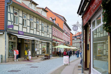 WERNIGERODE, GERMANY - NOVEMBER 23, 2012: The Breite Strasse (street) is the central pedestrian walkway of the town with many stores and cafes, on November 23 in Wernigerode