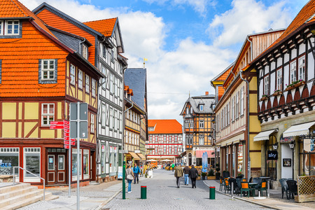 Typical colorful architecture in Wernigerode, a town in the district of Harz, Saxony-Anhalt, Germany