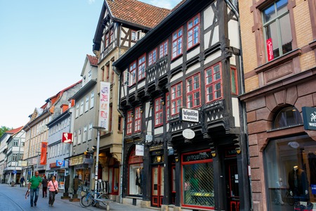 WERNIGERODE, GERMANY - MAY 4, 2015: Typical colorful architecture in Wernigerode, Germany. Wernigerode was the capital of the district of Wernigerode until 2007