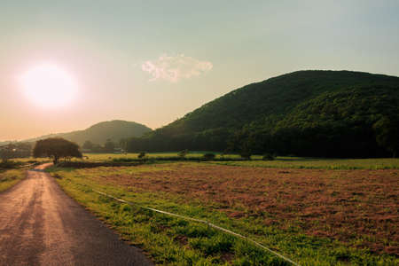 Road scenery in natural with morning sunshine, beautiful sky generative ai illustration
