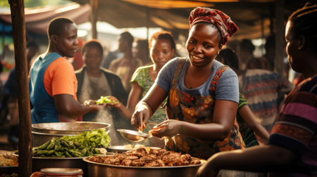 Lively Kenyan Market with Nyama Choma Ugali and Vibrant Sukuma Wiki