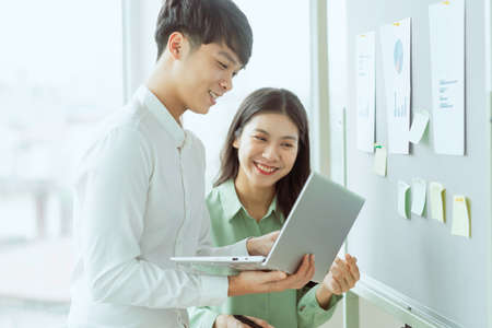 The picture of the asian man working inside the building doing the start up company of technology and innovation, start up business require skills like market research and business planning. AIG43.