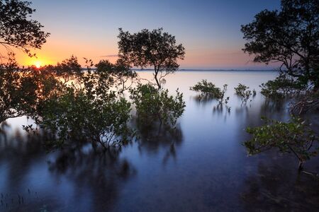 Australian mangrove trees at sunset (Brisbane, Wellington Point, QLD, Australia)