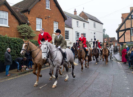 WINSLOW, UK - December 26, 2018. Men and women riding on horseback in a traditional fox hunt on Boxing Day in England