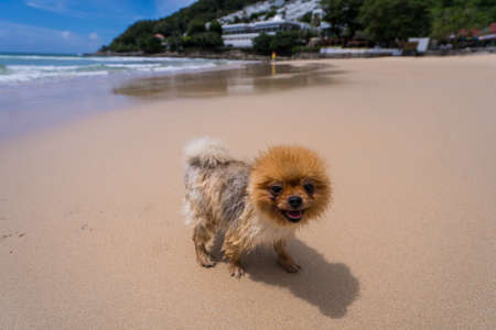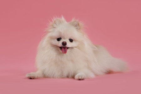 Funny pomeranian dog with happy face. Pomeranian spitz. Pom dog. Cute pets