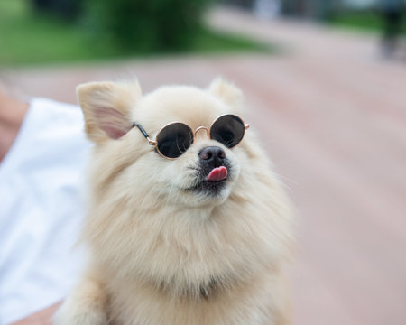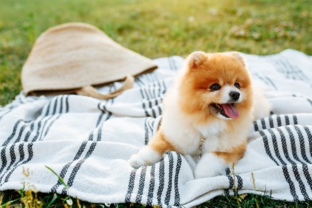 Pomeranian dog on a walk. Dog outdoor. Beautiful dog
