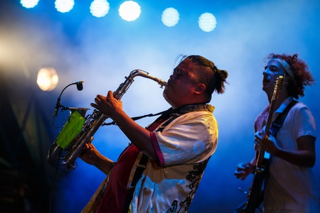 Kaliningrad, Russia, August 04 2017: Concert of the belgian band La Chiva Gantiva on the XII International Music Festival Kaliningrad City Jazz