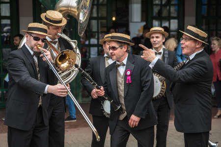 WROCLAW, POLAND - APRIL 15; 2018: The opening day of the season at Horse's Racecourse WTWK Partynice. Music band as one of the attraction.