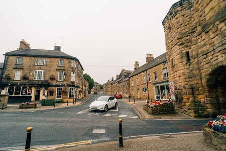 old street with historic buildings in the town center of Alnwick in Alnwick, England - may 2023. High quality photo