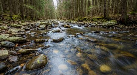 Capturing the Tranquility: Serene Waterflow over a Rocky Streambed --AR 3:2