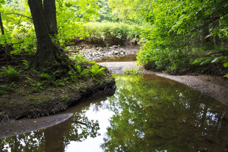 Forest river creek water flow. Beautiful landscape