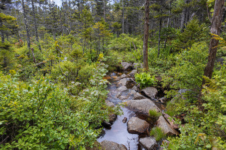 A beautiful natural landscape featuring a small river. Quebec, Canada.