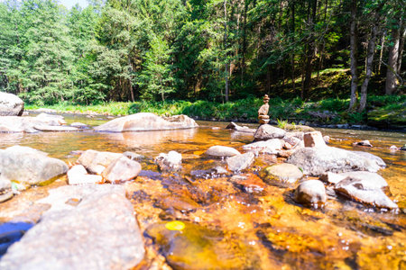 River in the forest. rocky watercourse. water flow. woodland creek. brook on a summer day