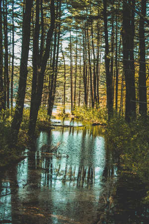 Marshland. Stream through the swamp. A creek through thick green vegetation in a wetland in Algonquin Provincial Park Ontario, Canada