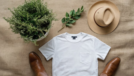 Casual t shirt mock up top view, clothes background for logo, female tshirt, male t-shirt empty blank