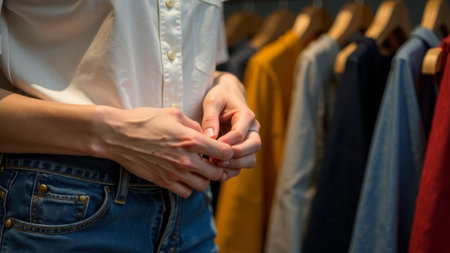 Eco-friendly apparel champions sustainable fashion, circular trends guiding the path to a greener wardrobe. close-up