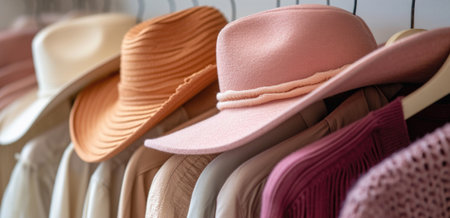 Array of Chic Pastel and Earth Tone Hats on Display with Sweaters
