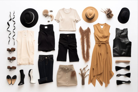 a clothing collection with a variety of items, including dresses, pants, and shirts, created with generative ai