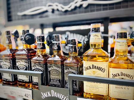 Spirits. Editorial photo on mobile. Supermarket Belarus