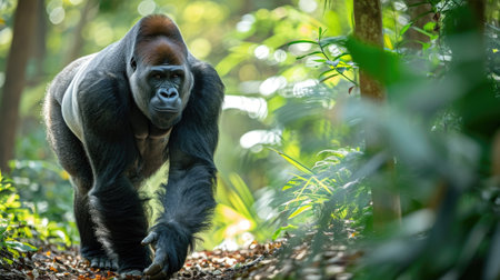 Western lowland gorilla showing its strength in its natural habitat with blurred background
