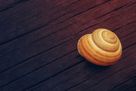 snail shells close up on wooded plank