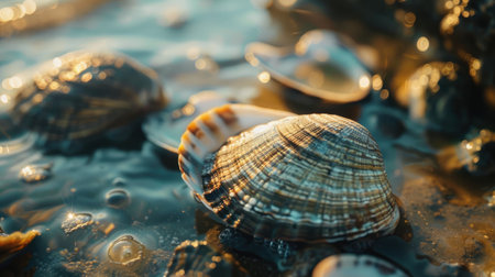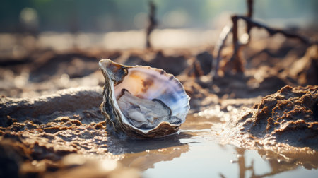 An AI generated illustration of clam on shallow water of a beach