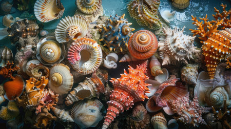 Multicolored seashells. Generative AI illustrator