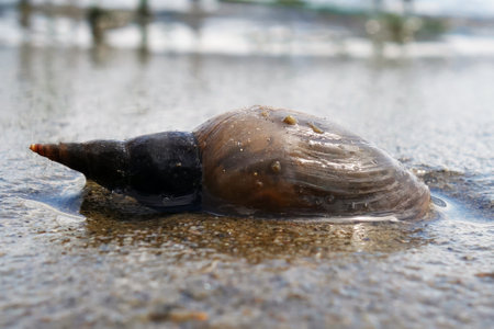 A water snail on a sandy shore
