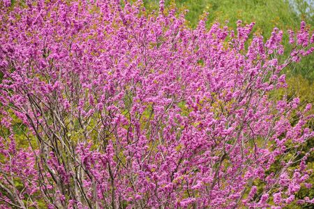 Close up of violet blossoming Cercis siliquastrum plant at Caucasus area