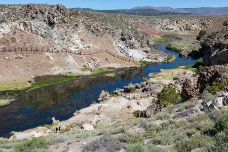 Hot Creek has dozens of natural hot springs bubbling up within the rocky walls of a river gorge and in the shadows of towering Eastern Sierra mountain peaks.