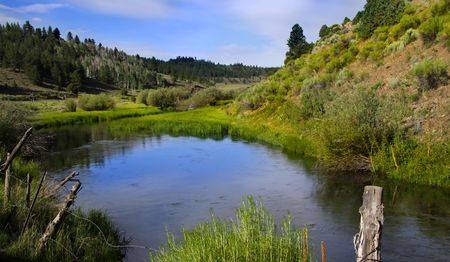 Landscape image of north fork of Boise mountain river in Idaho in the fall.