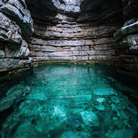 Serene underground pool in a natural cave