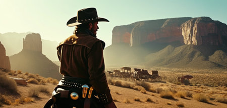 Cowboy in the desert. Western cowboy in a red hat.