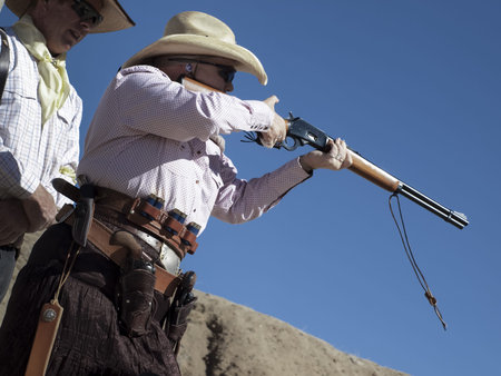 2012 annual match of Colorado Shaketails Cowboy Action Shooting SASS Club. The firearms used are based on those which existed in the 19th century American West, i.e. lever action rifle, single action revolver, and shotgun.