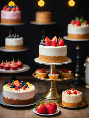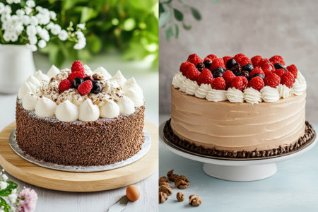 Indulge in a mouth-watering collection of beautifully crafted cakes with rich layers, fresh berries, and exquisite toppings, perfect for dessert lovers and culinary inspiration.