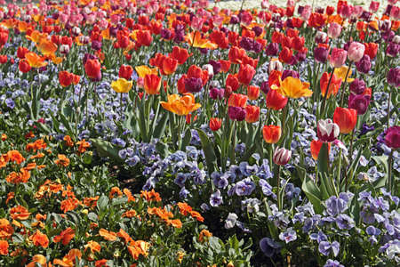 different beautiful flowers in park close-up